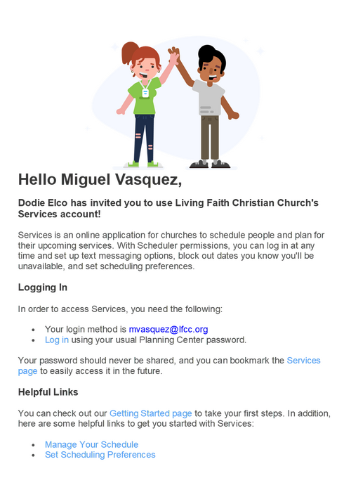- Then you will need to download the Planning Center Services app. The links to the downloads are in the email.